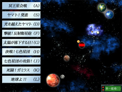 Something else new about this game was a genuine opening title sequence, a beautiful CG version of the original with the vintage recording of the Yamato theme. See it in motion here. Vocalist Isao Sasaki was involved in promoting these games, along with an army of Yukis. (As seen at the bottom of this page.)