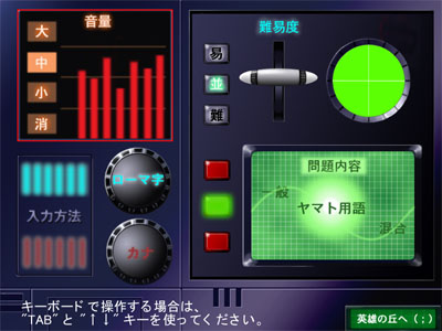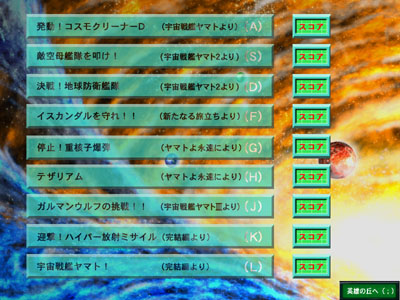 Clicking on the statue of Captain Okita takes you to the nine missions which span the entire Yamato saga. As with Typing Warp, all are accessible at all times.