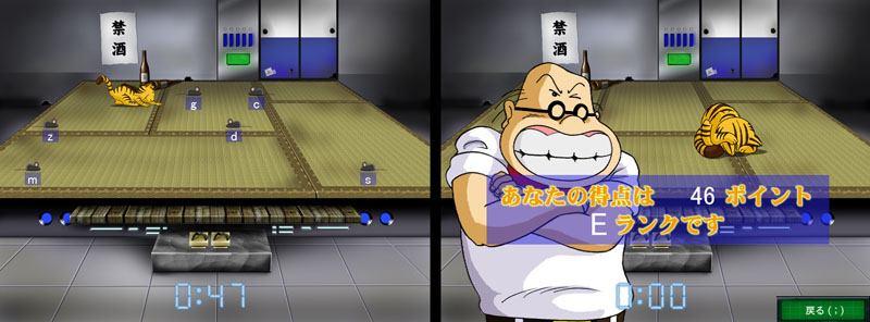 Mousecatcher Mi-kun! Dr. Sado watches as mice with letters and numbers on them stampede past Mi-kun, who can only catch them if you type the right character. If any of them get by you, Sado reads you the riot act.