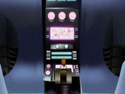 Dr. Sado is a new character in this game’s menu, and he takes you to a new section: bonus games. On the right we have Simulator Target Practice run by Nanbu (Dash) in which spaceships fly in and you type their names to blow them out of the sky. On the left is another game entirely…