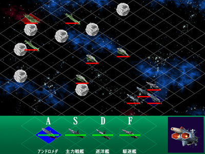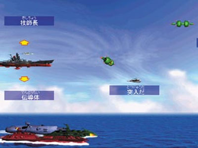 In this scenario from The New Voyage, Yamato assists Dessler’s remaining forces in their sea battle against the Dark Nebulans. This is a side scroller in which typing words above or below Yamato moves it up or down to outmaneuver the enemy.