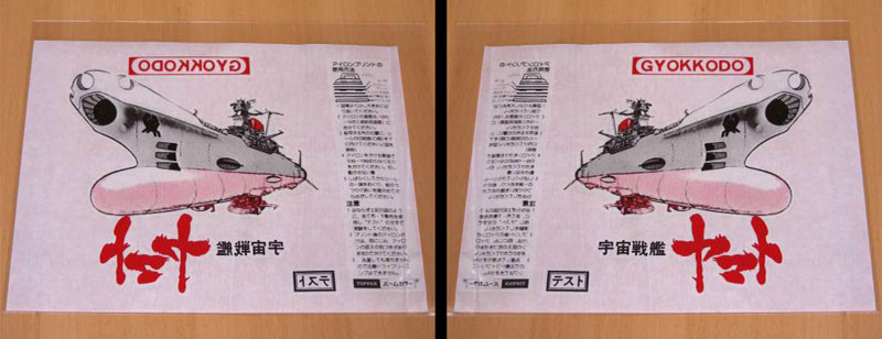 Another option was to make your own Yamato apparel with this no-nonsense “iron print” applied to the clothing of your choice. (shown “normal” and “flopped” for your convenience.)