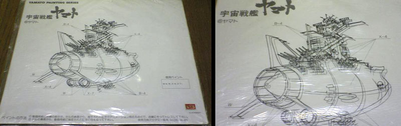 Moving up the age ladder, we find Apollo’s Real Painting Set, which gave fans a chance to color in a set of eight Yamato images that were printed in either 2-color or black and white on cardboard. Click here to see a gallery of the entire set.
