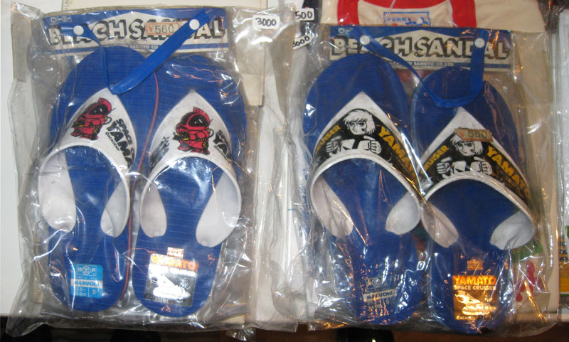 Hauling stuff around was a lot easier with something on your feet, so the Maruchu company provided a pair of Yamato beach sandals. It must have been a great comfort to look down at your toes and see either Analyzer or Kodai (or a mix if you preferred) looking back.