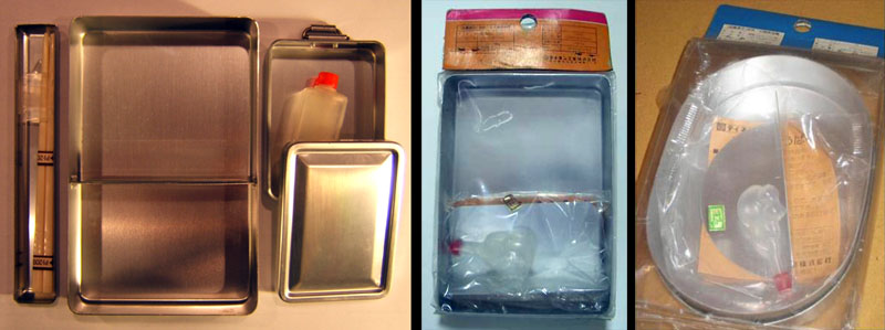 And last, three different sizes of bento box. Left to right: large (sandwich size), medium, and small. The small one is a perfect size to store Yamato postcards in.