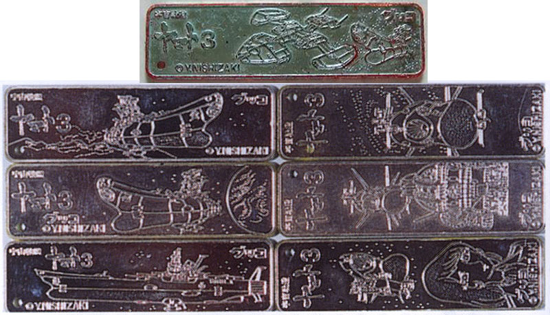 Sticks of Yamato bubblegum had previously been packaged with three different kinds of plate, and one of these, the “pikari [shiny] plate,” was retooled for Yamato III. There were 20 different variants, this time coated with silver enamel.