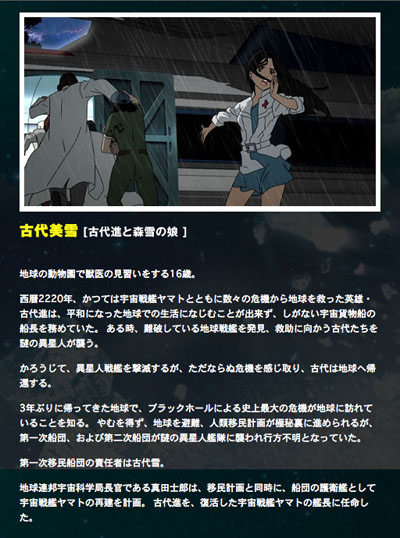 Her father was the hero who saved the people of Earth from many crises in Space Battleship Yamato. Now the year is 2220. Susumu Kodai has become unable to adapt to a peaceful life on Earth, and is now the captain of a minor cargo ship.