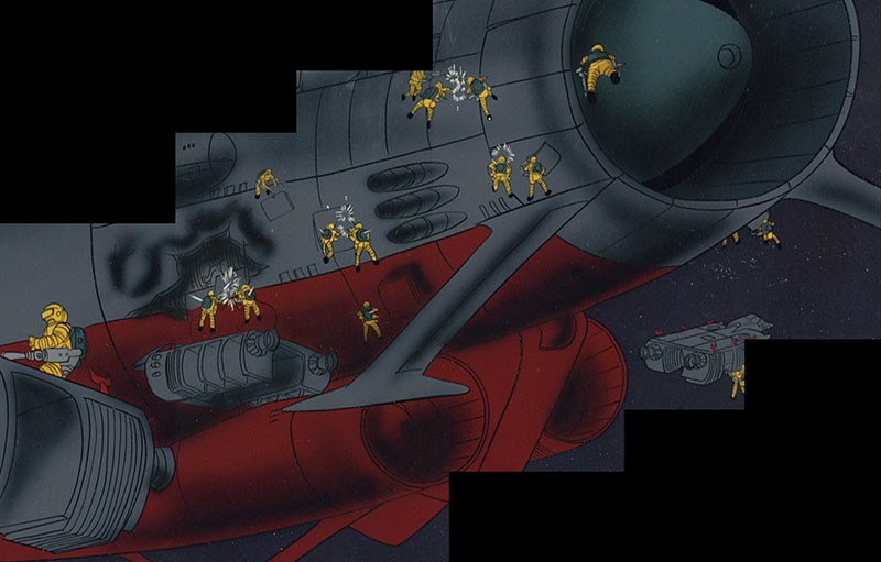 Production note: In the original 39-episode plan for the series, Yamato was to reach the asteroid belt between Mars and Jupiter in the fourth episode and acquire the defensive ring, which was a concept developed way back when the ship itself was still basically a giant asteroid. The idea was moved to this episode when it became necessary to use it in battle. Captain Okita uses the term ‘Asteroid Ship’ several times, which was the original title for the concept that eventually became Yamato.