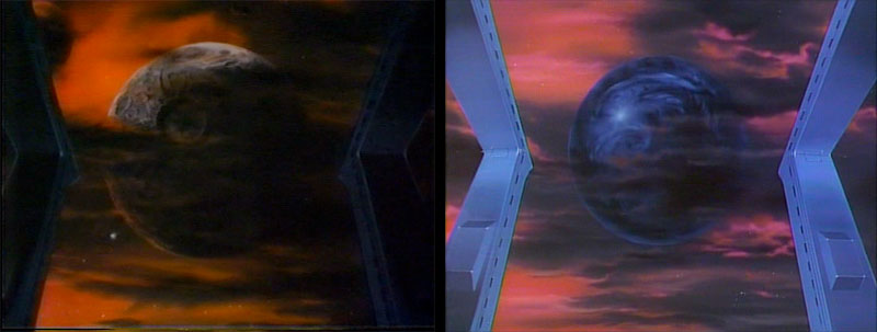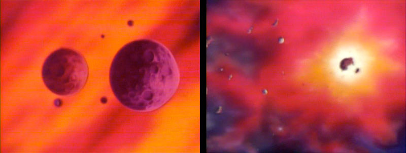 Here’s the first new material from Version B, another shot of colliding planets. We then cut wide to see their impact