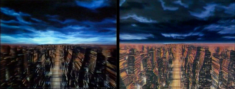 Wide shot of the capital city in ruins. Color enhancement made Version B more visible.