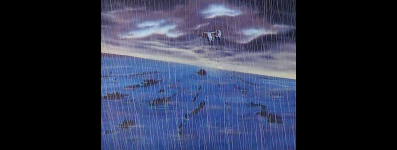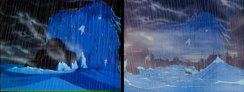 Aquarius unleashes its planetary flood on Dinguil. Color enhancement and mist effects gave it a very different appearance in Version B.