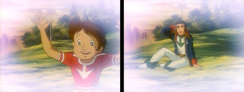 Despite mortal wounds, Shima struggles mightily to support Kodai’s effort. After doing his part, he pauses for a memory of more pleasant times with his little brother. As with all previous scenes involving Jirou, these were new to Version B.