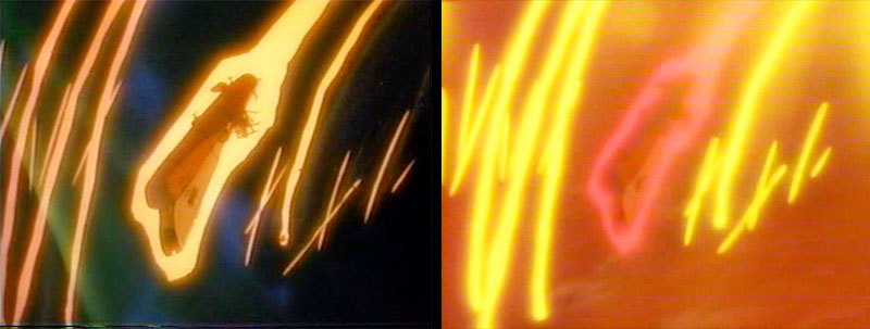 Ultimately, Yamato falls straight through the crumbling Uruk before powering up. This was another case of heavy color enhancement in Version B.