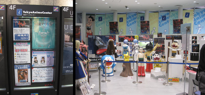 The first stop was Tokyo Anime Center in Akihabara, where Anton had attended a mini-exhibition that opened on November 17 (read about it in his report, linked above). Both were somewhat of a letdown; you’d expect a facility with a name like that to be more than a single room with displays and mass-market merchandise, but at present that’s all it is. I’d envisioned something more like an interactive anime museum. Maybe someday that’s what it will become, but surprisingly there isn’t anything in Japan that fits that category yet.