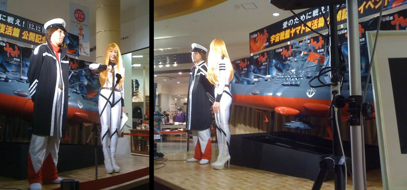 From Jusco we ventured back to the Goods Fair to see a live event that was coming up soon. That’s when I suddenly caught a familiar face and got the single biggest surprise of the trip. It turns out I’d met the organizer before. He runs a Japanese company named Organic Hobby, which (as reported here) had a booth at Comic Con International in San Diego last summer. They caught my eye at the time because they were showing the same advance movie footage I’d seen at Yamato Party. I asked what their connection was, and they told me they would be selling products from the movie. (Sure enough, “Organic” was one of the sponsors listed in the end credits.)