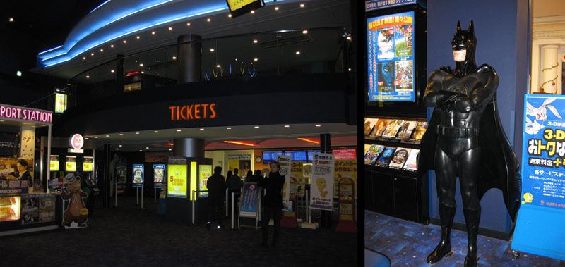 I asked Tsuneo in advance to select his own favorite theatre, and he chose one in the suburb of Iitabashi that had the surprisingly familiar name of Warner Mycal. Indeed, it belongs to the same organization that provides me with regular employment (I’m one of the lucky guys who gets to draw storyboards for the animated Batman TV series, The Brave and the Bold), so I was amused to find myself face-to-face that morning with my “boss” in the theatre lobby.