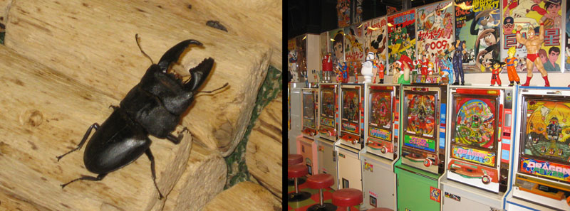 From here the kitschy wonders continue. You can buy a beetle in this mall. Not your scrawny temperate variety, either; these are the giant 6-inch monsters with jaws and horns. Tsuneo remembered catching them with ease at his grandfather’s farm. In the days before pro wrestling, boys would pit them against each other in epic backyard brawls.