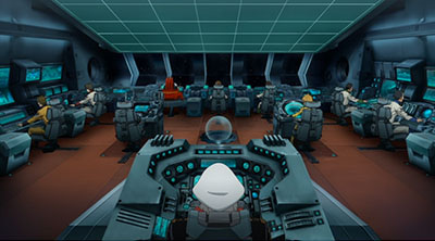 In the script, the locations inside the ship were not specified, so I decided on them when I worked on the storyboard. The room Alter goes into has a red gate, and the inside of the room is blue. Sometimes viewers can’t tell if we’re inside a certain room or not. That’s why the room is blue and the gate is red.