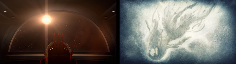 When I drew this storyboard I was thinking about the original Rainbow Star Cluster episode. The camera was right up to Domel’s face, a tight close-up. I really wanted to do it here. The scene made it into the trailer for Chapter 6, but the director saw it there and decided it was too much. (Laughs)