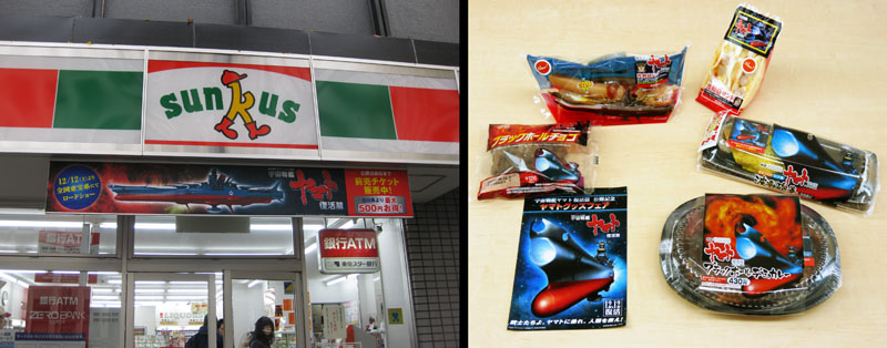 But now they had a lots of products: calendars, posters, t-shirts, underwear, and models. The organizer of the exhibition noticed a “non-Japanese” guy and jumped on me trying with all his might to say it: “Su-pe-su Ba-to-ru-shippu Yamato!” He was really glad to hear that I can speak Japanese and of course he was surprised that I came from Russia (who wouldn’t be?). He and other staff members helped me in my difficult task, to complete the whole collection of five new capsule toys. I tried for them in a vending machine about twelve times but all I got were a few Yamatos and MANY Blue Noahs. Fortunately I could exchange them, so I got two full sets but without the Cosmo Pulsar. Not to worry, readers, between us Anton and I managed to score two complete sets. So everyone can relax now.