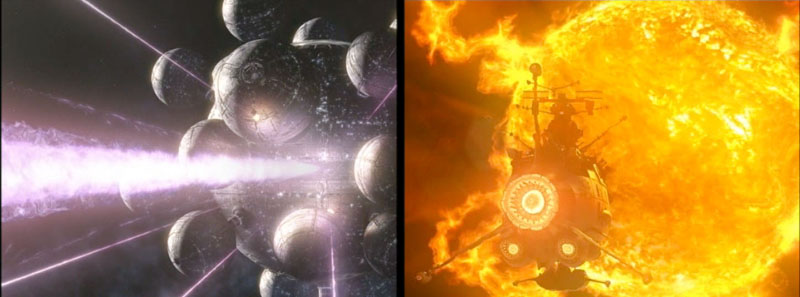 These stills from the opening title sequence tell the tale. They stand up to anything Hollywood has to offer, and indeed look to have been strongly influenced by such western fare as Battlestar Galactica and the 2009 Star Trek movie. Yamato has never looked more realistic or more powerful as it slams through one enemy after another. And the real joy of CR Yamato 3 is that scenes from The Bolar Wars have been revived with all the care and attention they deserve.