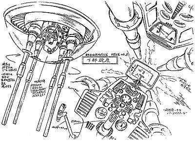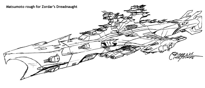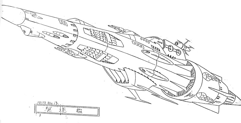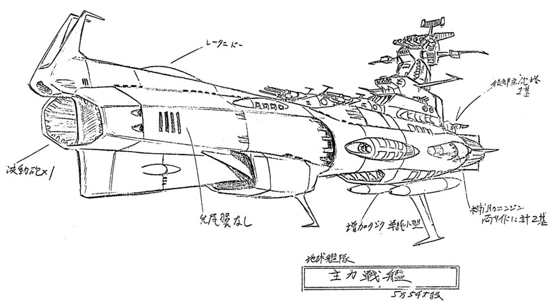 The Andromeda was created as a Yamato-size ship. But it was supposed to be an entirely new design, not modelled after Yamato, so we had to create the ship with this understanding. I designed its basic, overall style. I also invented the twin wave-motion guns. Based on my design, Mr. Matsumoto revised the bridge to add his own touch. I cleaned up his revised design. This was the basic process for everything.