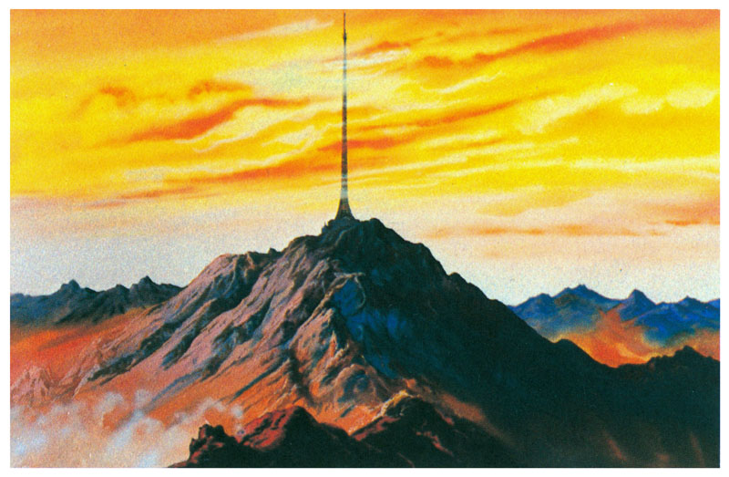 On Earth the entire surface is now a sea of magma and there are no constructs above ground level, but an antenna for communications with Icarus must protrude from the land. A huge pedestal of heat-resistant concrete is built and a 2,000 meter antenna is placed on top of Mount Everest.