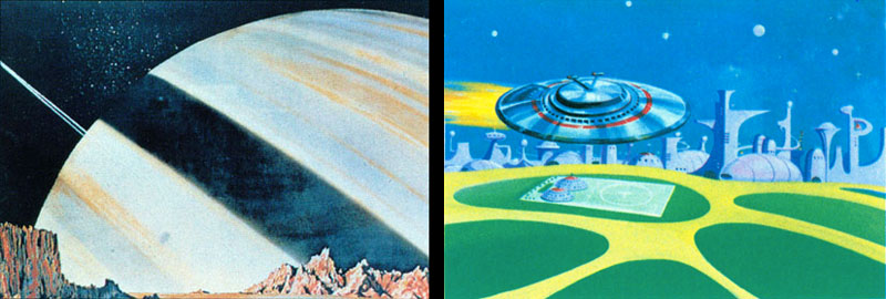 Here is the complete text of Toyota’s story proposal, which is an expanded version of his Asteroid 6 concept. (No obvious reason existed for the Asteroid 6 title, since there were more than six characters and fewer than six spaceships. Hence the name change.) The art shown below was created in summer 1973 for the first plan book that promoted the series to prospective sponsors.