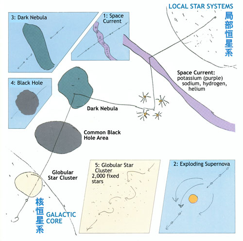 There are many independent regions in galactic space. A great deal of interstellar matter exists, such as nebulas and star clusters, which exhibit a variety of phenomonae.