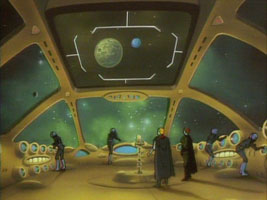 This creative decision lead to a major turning point for Dessler, giving him a closer look at his enemies and leading him to understand that he had much in common with them. His passion as a villain was finally balanced by a newfound compassion that gave him a wider view of the world. He gave up his ferocious vendetta against Yamato and devoted his energies instead to the future of his people. The next Yamato story, The New Voyage, depicted his first step in this new direction. But to the disappointment of his many loyal fans, Dessler was not to play a role in the followup adventure, Be Forever Yamato. Instead, he was off on a campaign of his own, as described below…