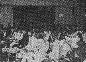 A meeting of Space Battleship Yamato Kanto district fan club representatives was held on May 24. I arrived at the meeting hall with a friend at 3:15. We were in a considerable hurry because it was scheduled to begin at 3:00, but we were relieved that it had not yet started. Most of the fan club representatives had already arrived, and it was quite jammed.