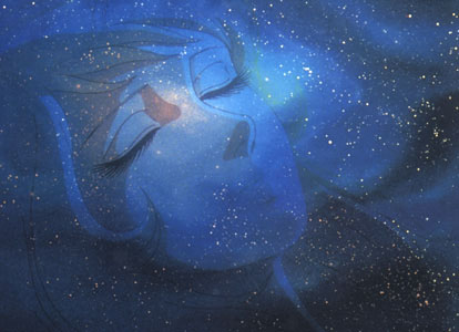 Mori Yuki, who made love with Kodai, glowed with happiness in the last scene, didn’t she? Our initial plan for this scene was for the two who became one (this was an awesome idea) to disappear into space, and the world of Queen Aquarius would fade in. However, because we were not satisfied with the scene of Kodai and Yuki, we only used stills of Aquarius. These, too, were not good enough.