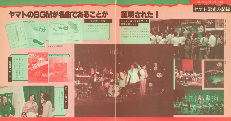 Like this concert, the popularity of Yamato music went far beyond the screen. One student in a school of music developed it into a suite for piano. In 1978 and 1979, the main theme of Yamato was performed by cheerleaders at the Koshien baseball stadium. It is not an exaggeration to say that it was not only the theme for the anime, but a standard for all of Japan. In any case, we wish to draw your attention once again to the great achievement of Mr. Miyagawa!