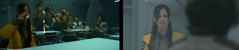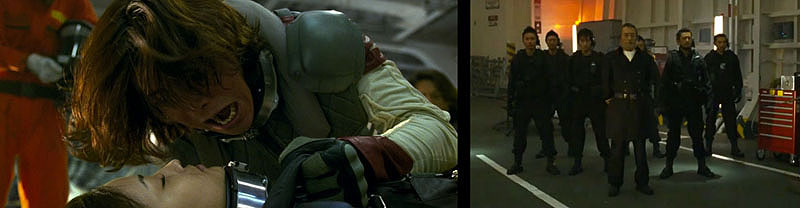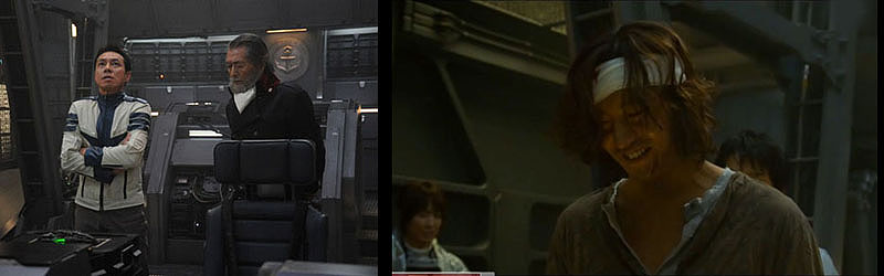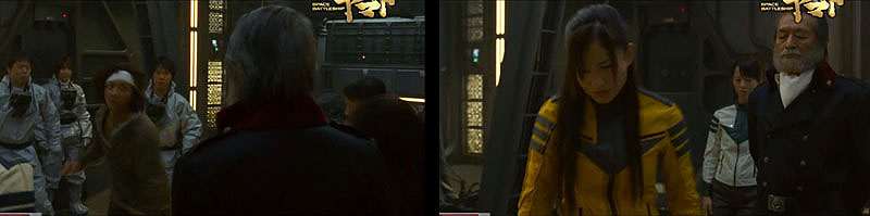 Yuki slumps onto the flight deck, not breathing. Kodai shakes and shouts at her, and she finally splutters her way back to consciousness. As medics wheel her away, Okita storms in with a complement of marines and confronts Kodai for disobeying orders. “I don’t believe in leaving my people behind,” Kodai snarls back, and allows himself to be escorted to the brig.