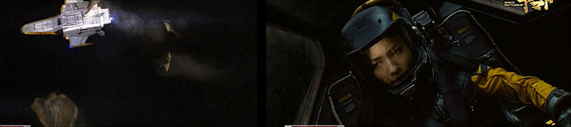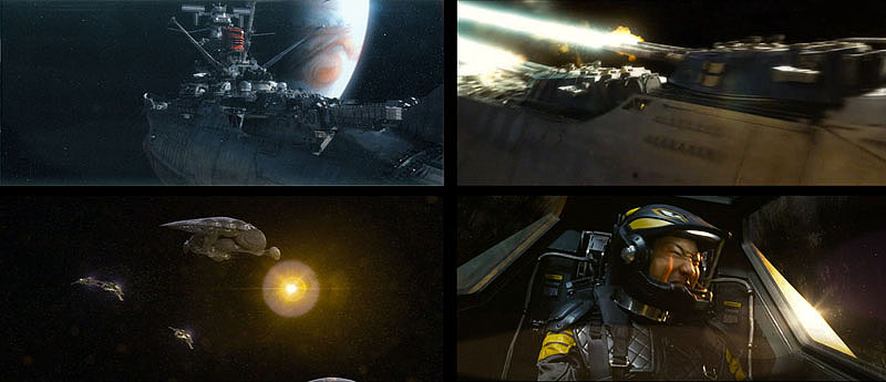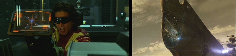 With almost no time left, every moment counts. The Gamilas fighters have regrouped and are now coming in for mass impact. Seconds from warp, Okita orders Shima to roll the ship. The Gamilas fighters soar past them, missing by inches as the Cosmo Zero flings itself into the open hangar bay. WARP!