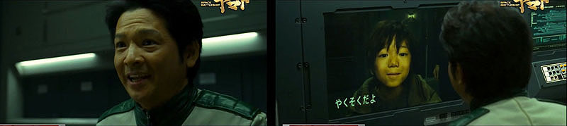 Kodai and others sit in the ship’s bar and toast Saito’s complete recovery. Yuki remarks that only Saito could take a stun-shot and be on his feet again just a few hours later. Saito respectfully salutes Kodai for saving his life, but then Kodai is called away to meet with Captain Okita.