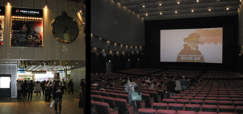 The theater was indeed a giant, large enough to contain an average block or two of Tokyo buildings. For all that, though, only about a third of the seats were filled since we came to the last screening of the day, 9:20 to 11:40pm. Most trains stop running between 12 and 1am, so late shows aren’t heavily attended.