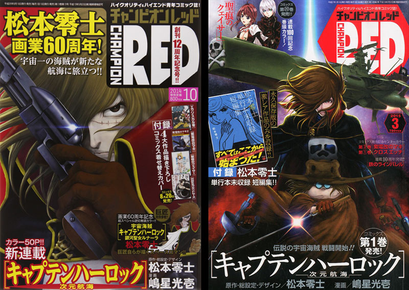 Champion Red, a monthly manga anthology published by Akita Shoten, caught the eye of Leiji Matsumoto fans with the October 2014 issue (published August 19), which featured the first chapter in a brand new Captain Harlock series that stands out from its predecessors in several ways.