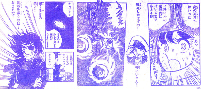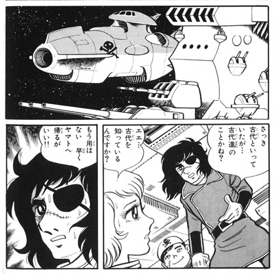 Click here to read the Harlock scenes, translated into English for the first time by Sword Takeda, edited and lettered by Tim Eldred. (Star Blazers names used for clarity.) These 14 pages include the meeting and Harlock’s subsequent appearance from the final chapter.