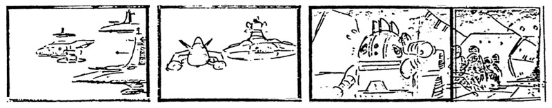 The writing of this draft began at a staff meeting in Hawaii, January 1980. Toshio Masuda had made strong contributions to the two previous Yamato films, and took over the writing process at this point with Nishizaki ensuring that the “Yamato flavor” was maintained (such as the drama between Kodai and Yuki) in the finished draft. Aside from occasional variations, the story was essentially decided at this stage and became the foundation of the film. Stills are shown for illustrative purposes only; they did not exist at the time this draft was written.