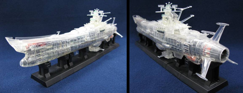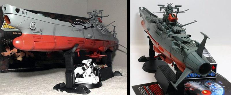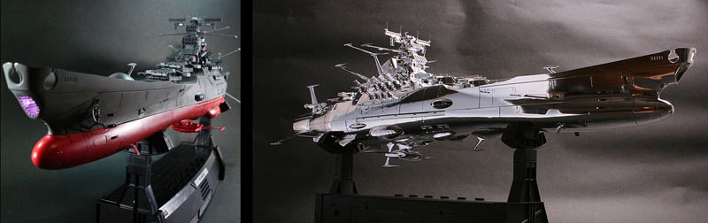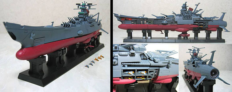 This version of Taito’s Super Mechanics Yamato was modified to match the ship’s redesign for the Yamato Resurrection. The original 2007 toy measured 40cm and was scaled at 1/665. This new one added 5 cm to the length and rescaled to 1/590. One advantage of creating an anime spaceship in CG is that the data can be used to generate a solid, real-life version, and that’s exactly what this is. The details and proportions precisely match the on-screen Yamato, which is a significant first.
