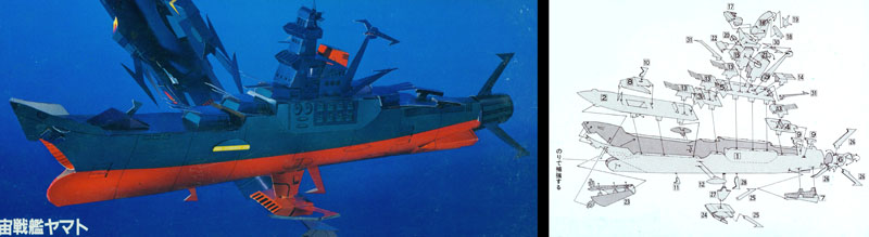 This revival of the papercraft fad was a book containing all the pieces needed to build an almost yard-long Yamato, Kodai’s Cosmo Zero, and a Black Tiger. It was one of the many products released during the copyright tenure of Leiji Matsumoto, and brings the total number of paper Yamatos to five.