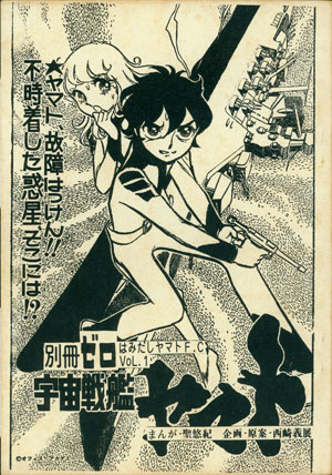 As elusive as the Terebi Land magazines are now, the fanzine is much harder to find; only 300 copies exist, which makes it exceedingly rare. It came about when members of the Hamidashi [Split off] Yamato Fan Club sought permission from Yoshinobu Nishizaki to make their own reprint for “research purposes." He agreed as long as they limited the circulation. Their club ‘zine was titled Zero, so this project was titled Supplement Zero Vol. 1. About the size of a standard paperback, it contained a complete photocopy of the manga (taken from Terebi Land) in 84 pages and was published in January 1978.