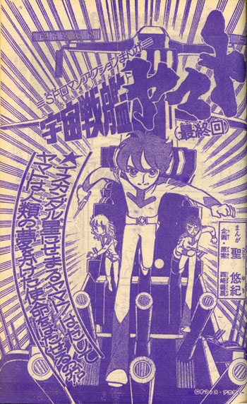 "lost" is always a tricky word to employ with things like this; once it’s been recovered, dusted off, and placed back in the public eye, such an object ceases to be “lost.” In this case, the word is still fitting since this unique version of Yamato remains "lost" in Japan; it was never officially reprinted after it was serialized in Terebi Land magazine (Nov. 1974 to March 1975). The reason was simple; after it ran its course, Executive Producer Yoshinobu Nishizaki decided it wasn’t consistent with his vision and he removed it from circulation. He acquired all the original artwork and locked it away from public view. In doing so, he unknowingly laid an irresistible challenge at the feet of the most tenacious Yamato collectors.