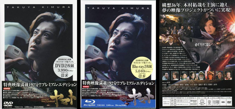 As the name implies, this is the most basic version. Above left is the preliminary image of the sleeve art, which was modified to include Takuya Kimura as Kodai. The final sleeve art is above right. This edition was released only on DVD (no Blu-Ray). The disc includes the movie (138 min.) and a collection of trailers and commercials totaling 8 minutes.