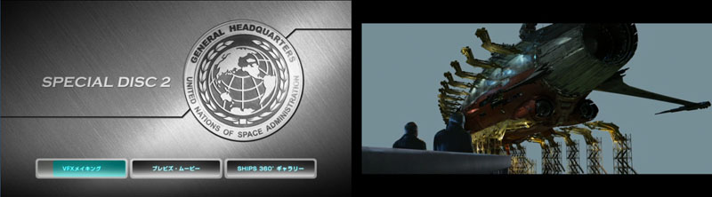 The last feature on the disc is a real treasure trove for mecha lovers: Ships 360Ëš Gallery. It presents you with 11 different ships from the film. We’ll choose Kodai’s Cosmo Zero as an example (above right).