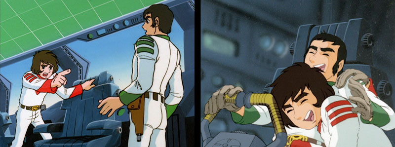 There is another surprising occurrence for him later. While searching for Cosmonite in the ice fields of Titan, he finds Mamoru’s crashed ship, the destroyer Yukikaze. But the body of Mamoru is not there. Grieving, Kodai reports his find to Captain Okita.