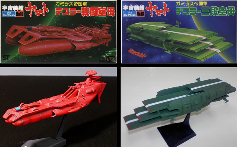Bandai leads everyone else in mass-market Yamato toys and models, and there are plenty of Gamilon ships in the mix. Shown here are two of Bandai’s “Mecha Collection” mini-models of the two most recognizable vessels: Dessler’s battleship from Series 2 and the green Destroyer (which comes with a mini Comet Empire submarine).