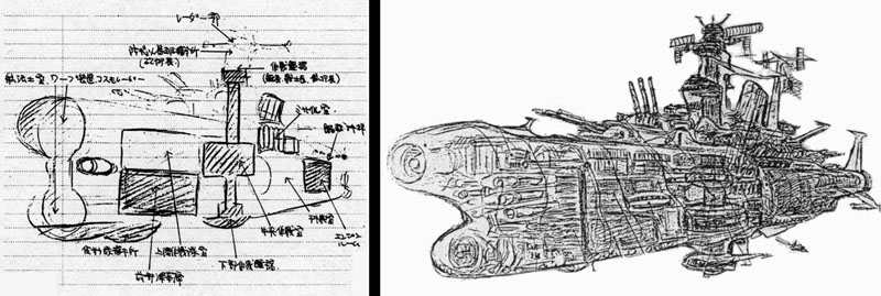 Two veteran animation writers who had previously worked with Nishizaki both came up with different versions of the “flying battleship” story. Keisuke Fujikawa’s draft was titled Space Battleship Cosmo and Aritsune Toyota’s draft was Asteroid Ship Icarus (also known as Asteroid 6). They began from the concept of a doomsday clock for the human race and a ship being built to save everyone. Cosmo‘s mission was to find a new planet, whereas Icarus was bound for Iscandar.