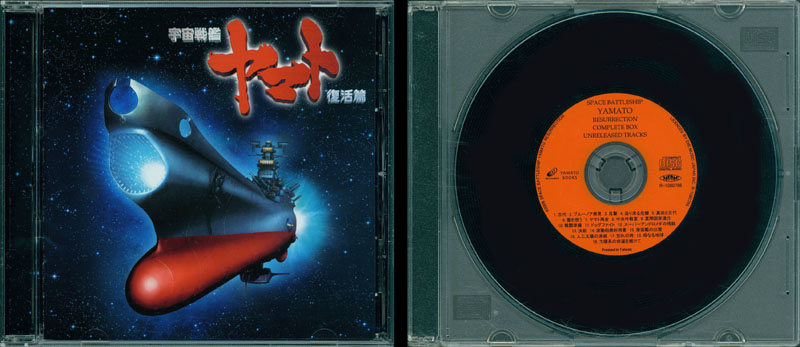 A second disc of “unreleased tracks” (above right) was included in the Yamato Resurrection “Complete Box” released in late 2010. It contains 19 tracks, again a mixture of anime BGM and classical music. Together, these two discs present the entire score of Resurrection.